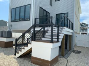 - The aluminum balusters are powder-coated and come with a 10-year warranty.